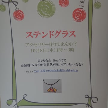 初めてのステンドグラスでアクセサリーを作るワークショップを開催します。