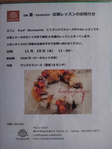 11月19日(水)13時より「クリスマスリース」のワークショップが決まりました。