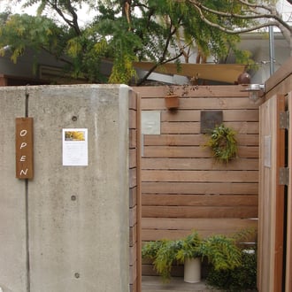 新しい看板はデッキ材の端切れに白いペンキでOPENと縦書きしました。