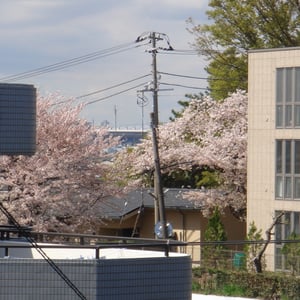 まずは駅のホームから見える桜です。桜吹雪の時期はホームに停まった