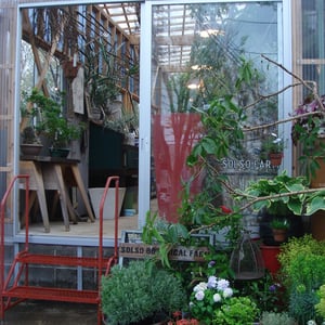 温室の店内には多肉植物などの植物やそのまま飾っておきたい植木鉢や