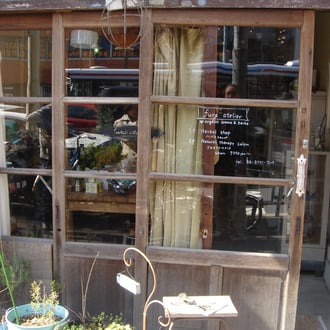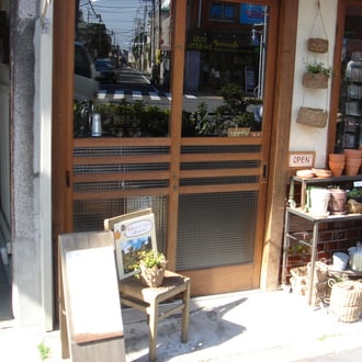 どちらも木のガラス引き戸でお店の前の小さなスペースに