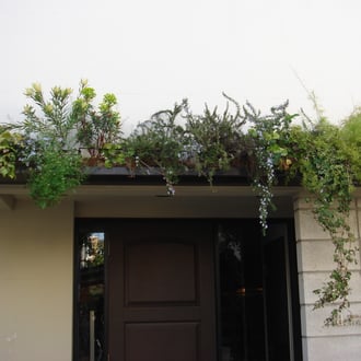 寄せ植えされ緑のグラデーションが楽しめます。