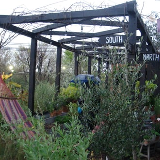 SOLSO FARMの庭は斜面を使って作っているので変化に富んだ