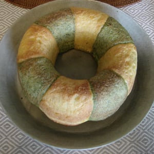 色がきれいな2色のパン種を交互に並べて焼いたパンは