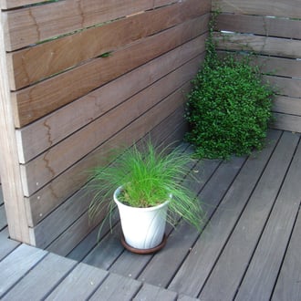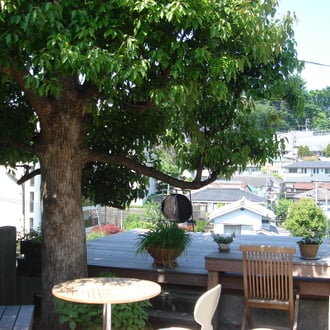 Roofのデッキの奥にある「ひめしゃら」の木に鳥の巣を見つけました。