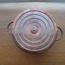銅製の小ぶりの鍋でふたが5つに分かれています。