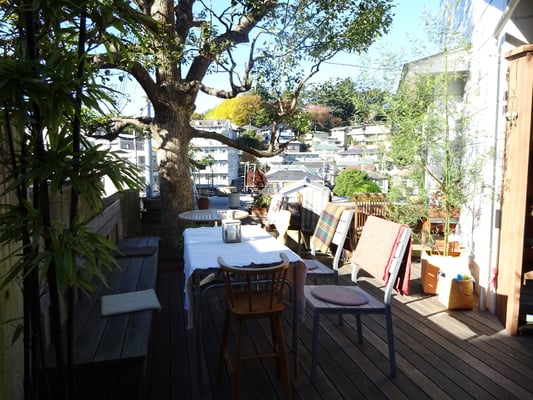 Roofから見える大倉山記念館の紅葉がきれいなので散歩がてら