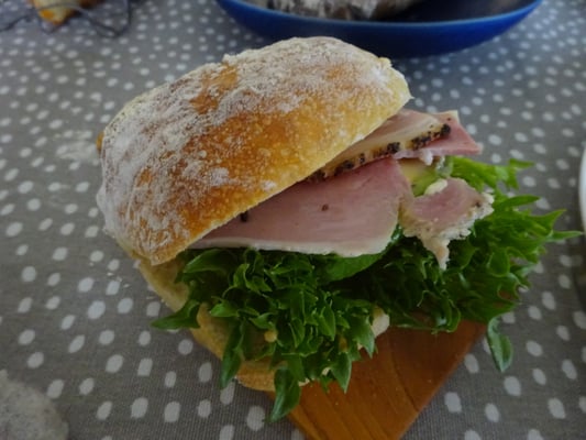 リュスティック 小麦粉と塩と水と酵母だけのシンプルなパンですが水分が多く入っているので軽い食感になって何を入れても合うパンです。