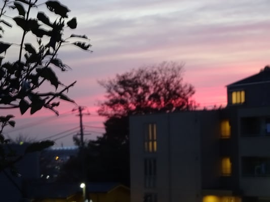 今日は1年で一番昼が短かく西に沈んでいく太陽が赤くきれいでした。