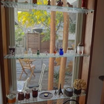 新たに仕入れた雑貨を本棚に並べ机の配置も変えました。