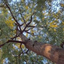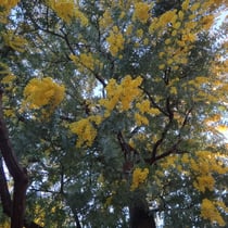 ミモザは青空に映えて一層鮮やかな黄色に見えました。