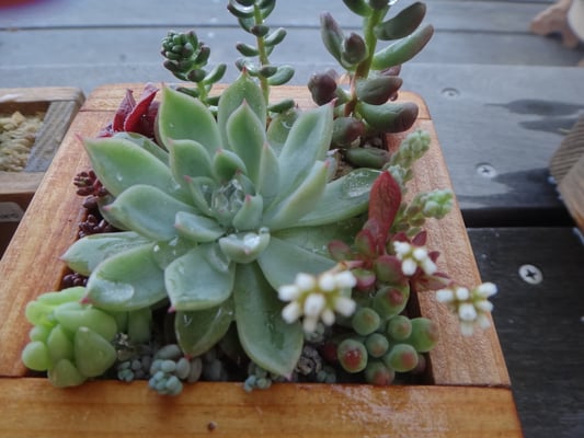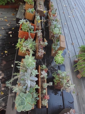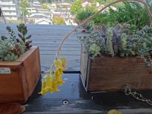 お店の多肉植物をデッキに並べ水やりをしました。
