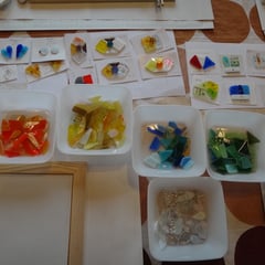 色とりどりのガラスを選んで形を決めるのが