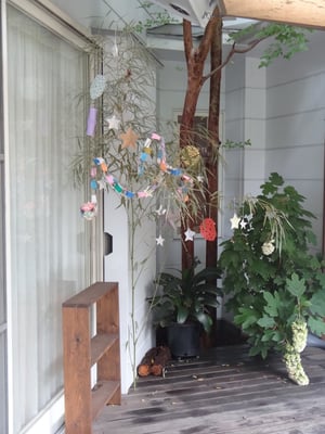 近所から取ってきた笹に少しづつ七夕飾りをしてきましたが毎日雨です。
