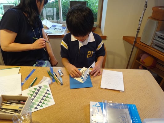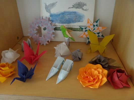 以前折り紙のバラを教えて頂いたお客様に又教えて頂きました。初めて挑戦したお客様は苦心してバラを完成されました。