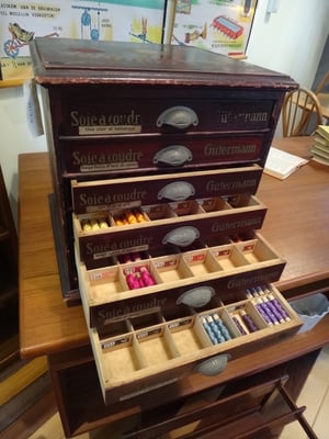 きれいな糸が入っている引き出しはどんなお店で使われていたのでしょう?