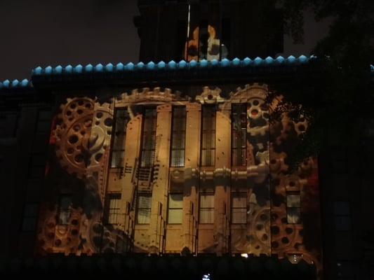建物正面外壁一杯に色とりどりの映像が映し出され圧倒されました。