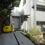谷中のヘビ道で見つけたモダンな家にあった黄色い小さな車はオブジェの様で本当に走るのでしょうか?