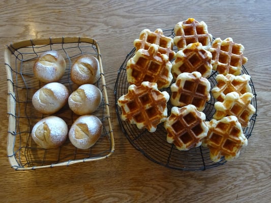 今日は今年最初の営業なので久し振りにワッフルと玄米パンを焼きました。