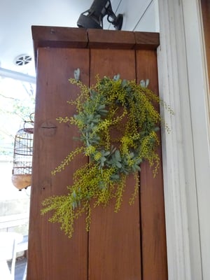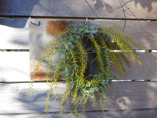 雪で折れてしまったミモザを捨てるのはもったいないのでリースを作りました。
