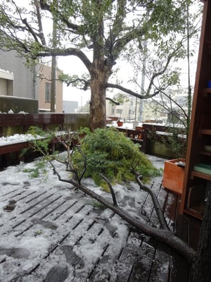 以前も雪で折れたのですが今回は大きな枝が折れてしまい木が半分になってしまいました。