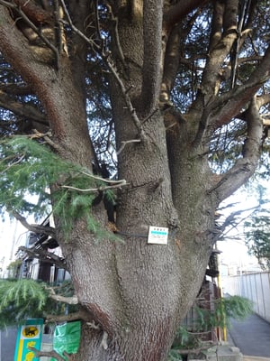 谷中のシンボルの様なヒマラヤ杉は3角の角に生えて隣のミカドパンと一体になっています。