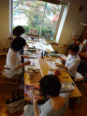 今日は夏の日差しのようなお天気で一生懸命作品を作られて