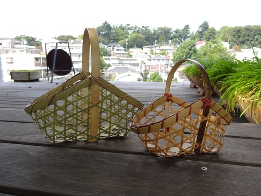 竹カゴのワークショップで新たに取っ手付きのカゴが選べます。