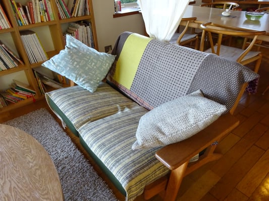 冬支度をとお店のソファーのカバーをウールのものに変えました。