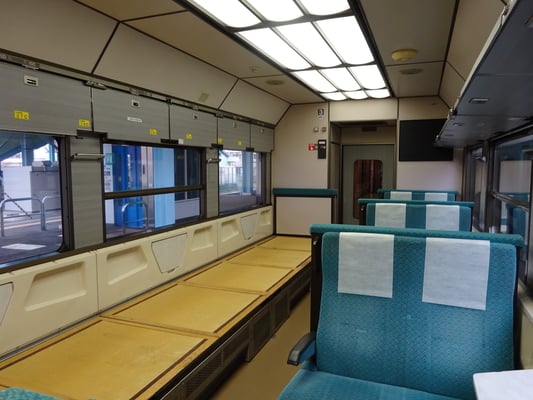 車内は片側は座席で片側は畳敷で自由に使え