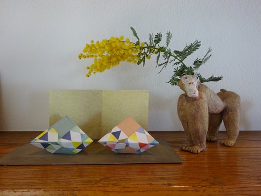 もともとはブロックという折り方ですがおひな様に合う紙を選んで折りました。