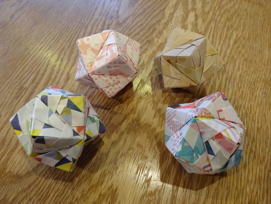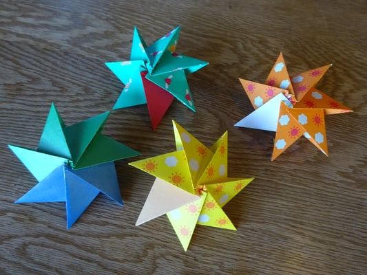 6個のパーツを組み合わせてつくりますが、しっかりした折り紙でないと