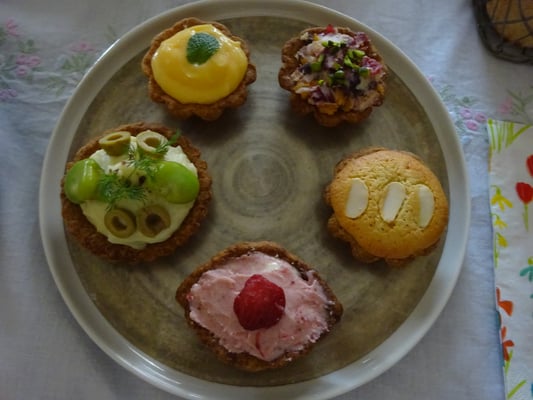 レモンクリーム・ポテトクリームを入れた目にも楽しいタルトレットです。