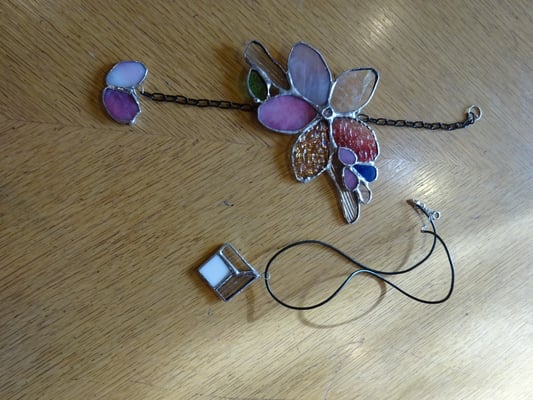 サンキャッチャーとアクセサリーが完成し大き目なトレーは完成までもう一息でした。