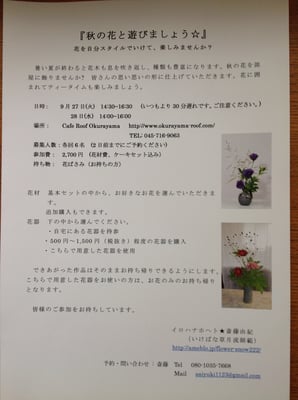 9月20日(火) 13時~15時 その後カフェタイム