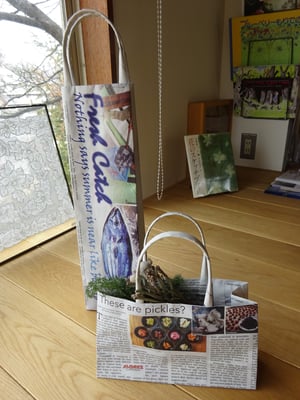 英字新聞でワイン入れとミニバックを作って頂きます。