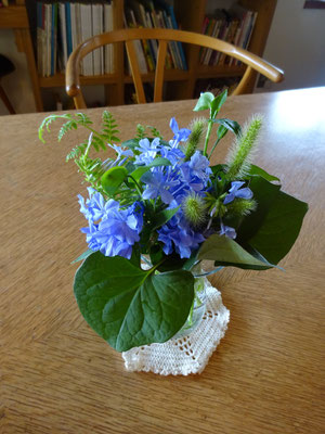 メダカの鉢に入れている布袋草が今朝咲きました。
