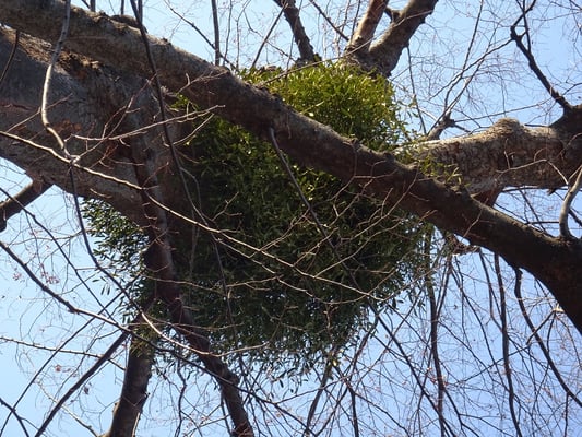 葉山のこみちを散策した時に見つけたヤドリギです。