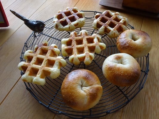 しましたので良かったらベーグルサンドとワッフル一つづつ