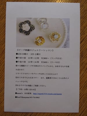 2月22日(金)14時~15時半 印鑑ケース 2000円 材料費・ケーキセット込