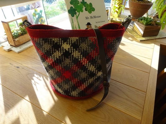 写真のバックは段染めの1種類の毛糸で編んだ