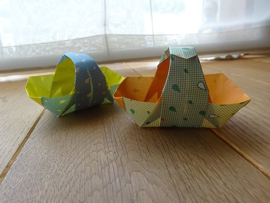 最近見つけた折り方は簡単で形も良いカゴバックです。