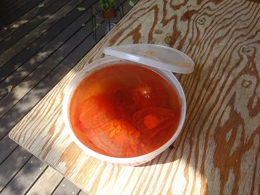7月中旬に水に漬けたホオズキが1か月経って周りが