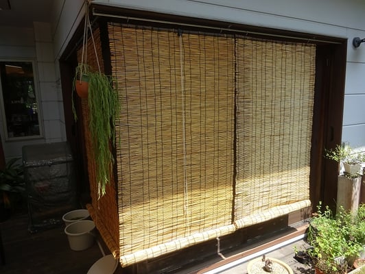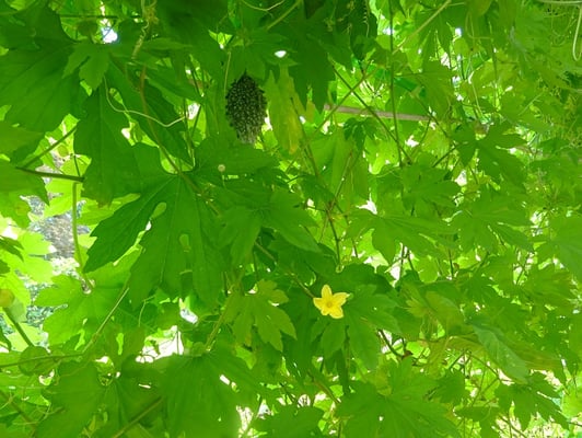 カーテン越の光は爽やかで小さなゴーヤは可愛いです。
