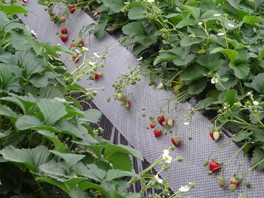 三浦のイチゴ農家の温室の中はイチゴが