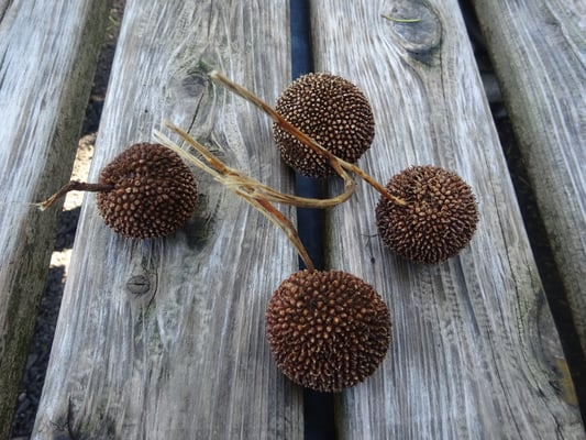 プラタナスの木の下を探したら立派な実が見つかりました。