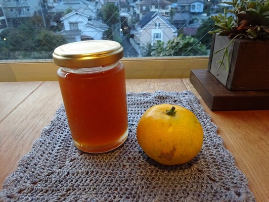 絞った果汁に砂糖レモンはちみつを入れて煮てジャムに