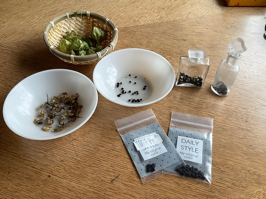 朝顔、カーディナルクライマー、風船カズラの種が