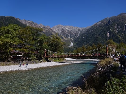 上高地の中心の河童橋から歩いて1時間にある明神池